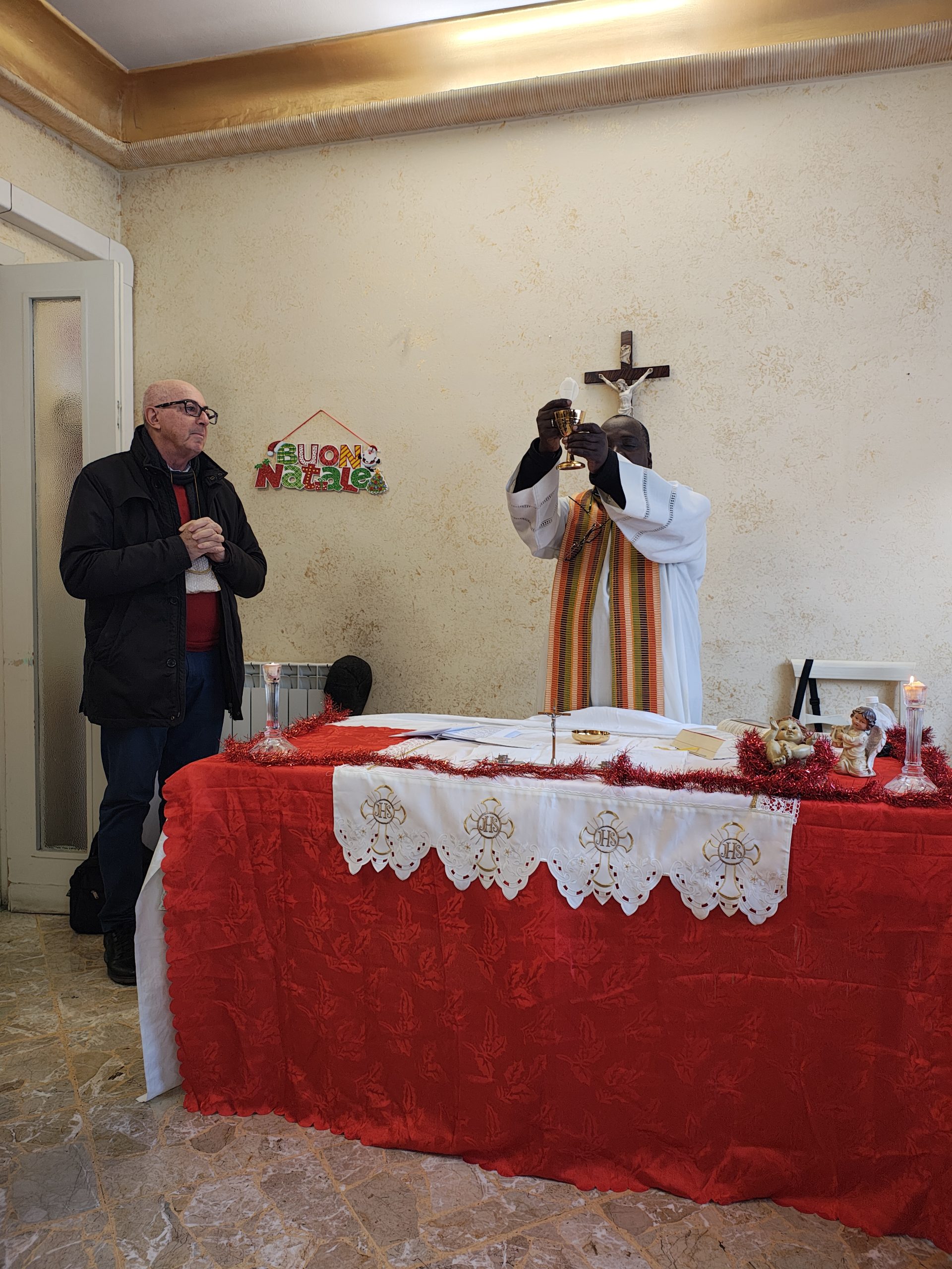 Abbiamo con il nostro parroco fatto celebrare la Messa e successivamente abbiamo festeggiato con regali per tutti con uno spirito di fraternità e allegria.